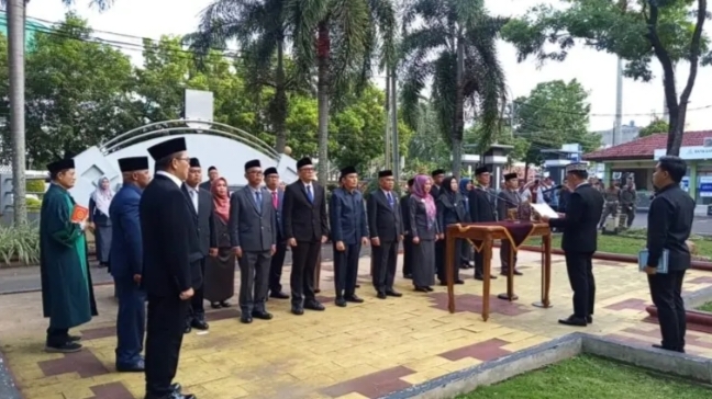 METRO – Sebanyak 18 orang Pejabat Tinggi Pratama (PTP) di lingkungan Pemerintah Kota (Pemkot) Metro di rolling. Rolling jabatan dan pelantikan berlangsung di halaman apel Pemkot setempat, Kamis (3/7/2025).